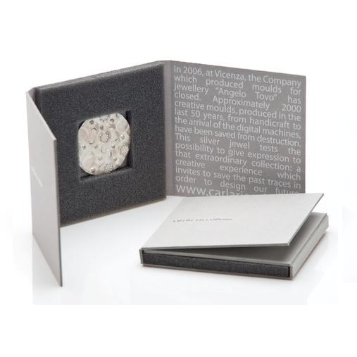 Dischi-spilla in Ag con magnete. Diametro mm.55. Piccola serie realizzata per l’azienda PIANCA spa. Silver round-shaped brooch with magnet. Diam. mm. 55. Small series produced for PIANCA spa company.